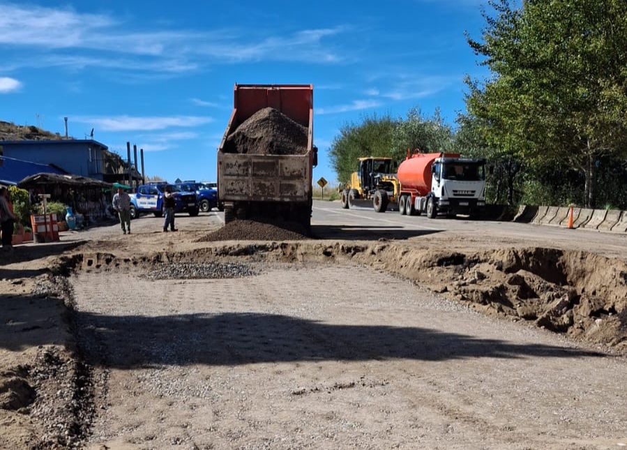 Para su reparación, se desplegó un operativo con maquinaria pesada, incluida una retroexcavadora, y se avanzará en el relleno del sector afectado con hormigón para restituir la estructura de la calzada.