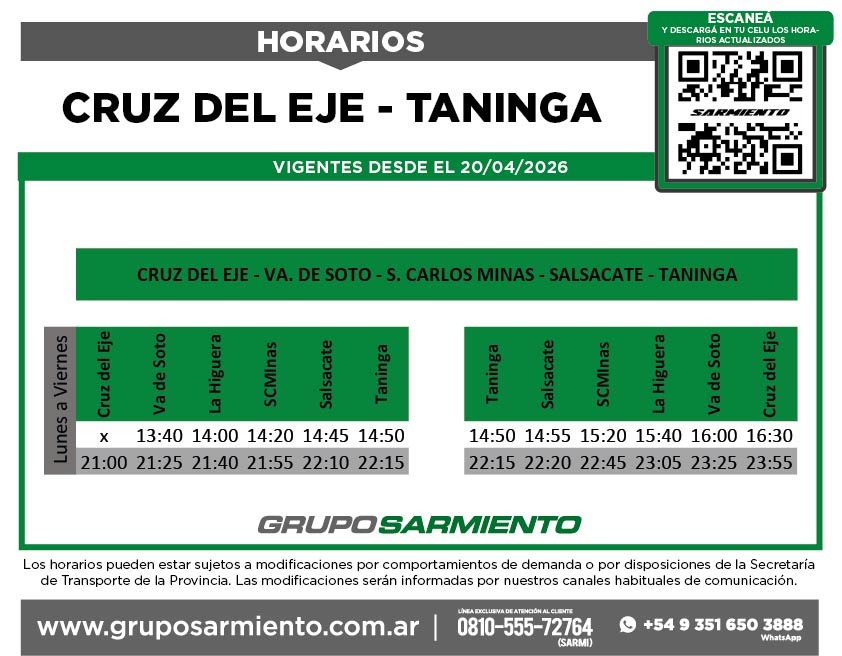 Por último, adelantó que continuarán las gestiones para mejorar las frecuencias en otros tramos críticos, como Cruz del Eje – Deán Funes, Cruz del Eje – Serrezuela y Cruz Del Eje Puesto del Gallo donde actualmente se registran importantes inconvenientes para los usuarios.